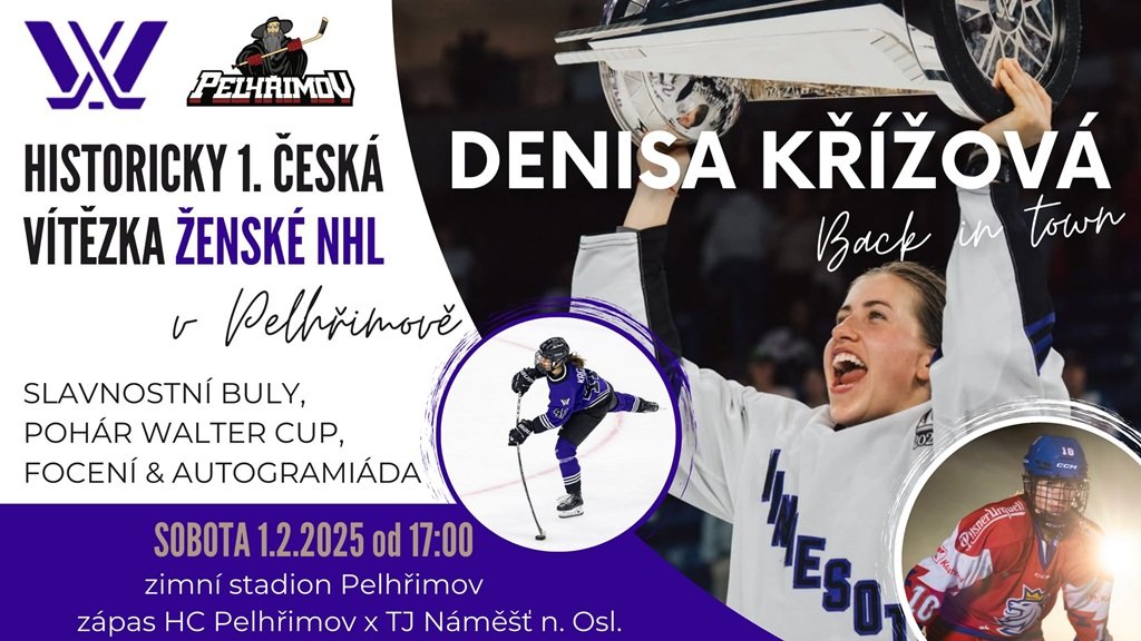 Jak již bylo řečeno v úvodu, domácí zápas s Náměští nad Oslavou bude mít slavnostní nádech v podobě návštěvy Denisy Křížové, hokejové reprezentantky České republiky, která je odchovankyní pelhřimovského hokeje a která se stala historicky první českou vítězkou americké PWHL, což je ženská obdoba známější NHL. Denisa Křížová byla také v červnu 2024 vyhlášena nejlepší hokejistkou České republiky a měla by patřit mezi klíčové hráčky českého týmu na blížícím se Mistrovství světa v ledním hokeji, které se bude konat v Českých Budějovicích. Denisa Křížová vhodí úvodní buly zápasu, do Pelhřimova přiveze originální pohár pro vítěze americké PWHL a zájemci se budou moci s nejlepší českou hokejistkou vyfotit či získat její autogram. V těchto kulisách zabojují Poutníci o udržení čtvrtého místa po základní části, které si Poutníci vybojovali v posledním zápase na ledě ve Světlé nad Sázavou. Prodlouží Poutníci vítěznou sérii a naladí se tak nejlepším možným způsobem před play-off? To bude jasné v sobotu 1.února po sedmé hodině večerní.