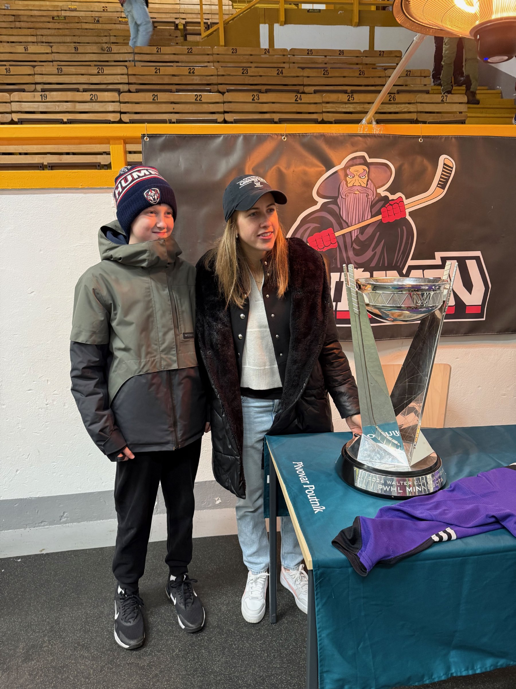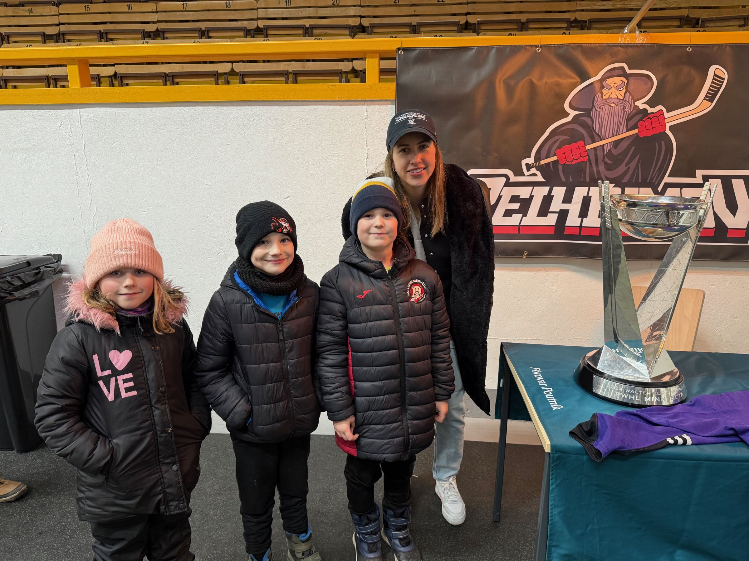 Denisa Křížová je odchovankyní pelhřimovského hokeje, kde až do svých 15 let sbírala první hokejové zkušenosti. Poté její cesta mířila do zahraničí, přičemž se následně stala první českou hokejistkou v nejprestižnější ženské hokejové lize světa - PWHL, kterou dokázala se svým týmem Minnesota Frost hned v první sezóně vyhrát. A nyní trofej Walter cup přivezla tam, kde s hokejem začínala. V rámci nabytého programu nejprve v sobotu v podvečer vhodila úvodní buly utkání Pelhřimov - Náměšť nad Oslavou, kdy ji přišli pogratulovat zástupci města i klubu. Mimo jiné Denisa obdržela certifikát českého rekordu, neboť se stala první českou šampionkou PWHL. Následně se v neděli ráno zúčastnila školičky bruslení, kde se s malými bruslaři ochotně fotila a darovala své podpisové kartičky. Děkujeme Denise za její vstřícnost a přejeme mnoho úspěchů v nadcházejícím světovém šampionátu v ženském hokeji, který startuje 9. dubna v Českých Budějovicích.