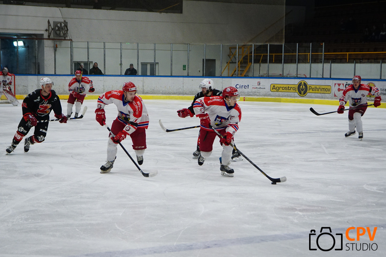 Hosté ze Žďáru nad Sázavou vstupovali do utkání v roli mírného favorita, čemuž dopomáhal i fakt, že v sestavě Medvědů se neobjevila hned šestice hráčů základní sestavy. Ovšem začátek zápasu patřil právě Pelhřimovu a již po 45 vteřinách otevřel skóre utkání Martin Hadrava. I další minuty ovládali domácí bojovníci podporováni skvělým výkonem fantoma v brance - Černého. Žďár se dostal do hry až v poslední dvacetiminutovce, ale vedení na svoji stranu vrátil Filip Kasalý a do prázdné branky se v poslední minutě trefil Vysloužil.