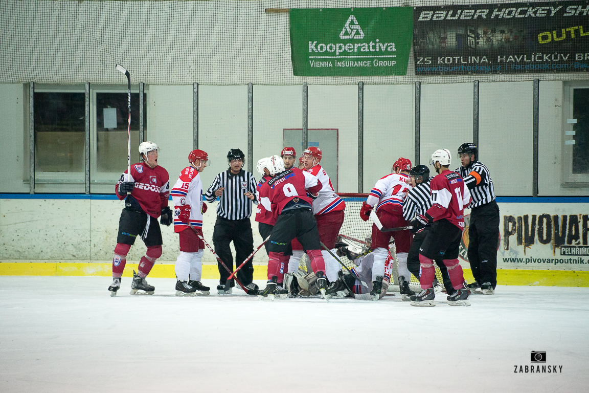 Branky a nahrávky: 16. Heldák (Furch, Kokoška), 24. Polívka (Vlček, Topinka), 34. Polívka (Uhlík, Topinka), 38. Houfek (Walter, Leština), 41. Topinka (Uhlík, Walter) – 16. Kopic (Pospíchal, Vysloužil), 47. Kasalý F. (Marek Hadrava), 49. Marek Hadrava (Kopic, Plachý), 55. Plachý (Vysloužil, Kasalý F.). Rozhodčí: Hucl - Rubáš, Tvrdík. Vyloučení: 1:5. Využití: 0:0. V oslabení: 0:0. Diváci: 220