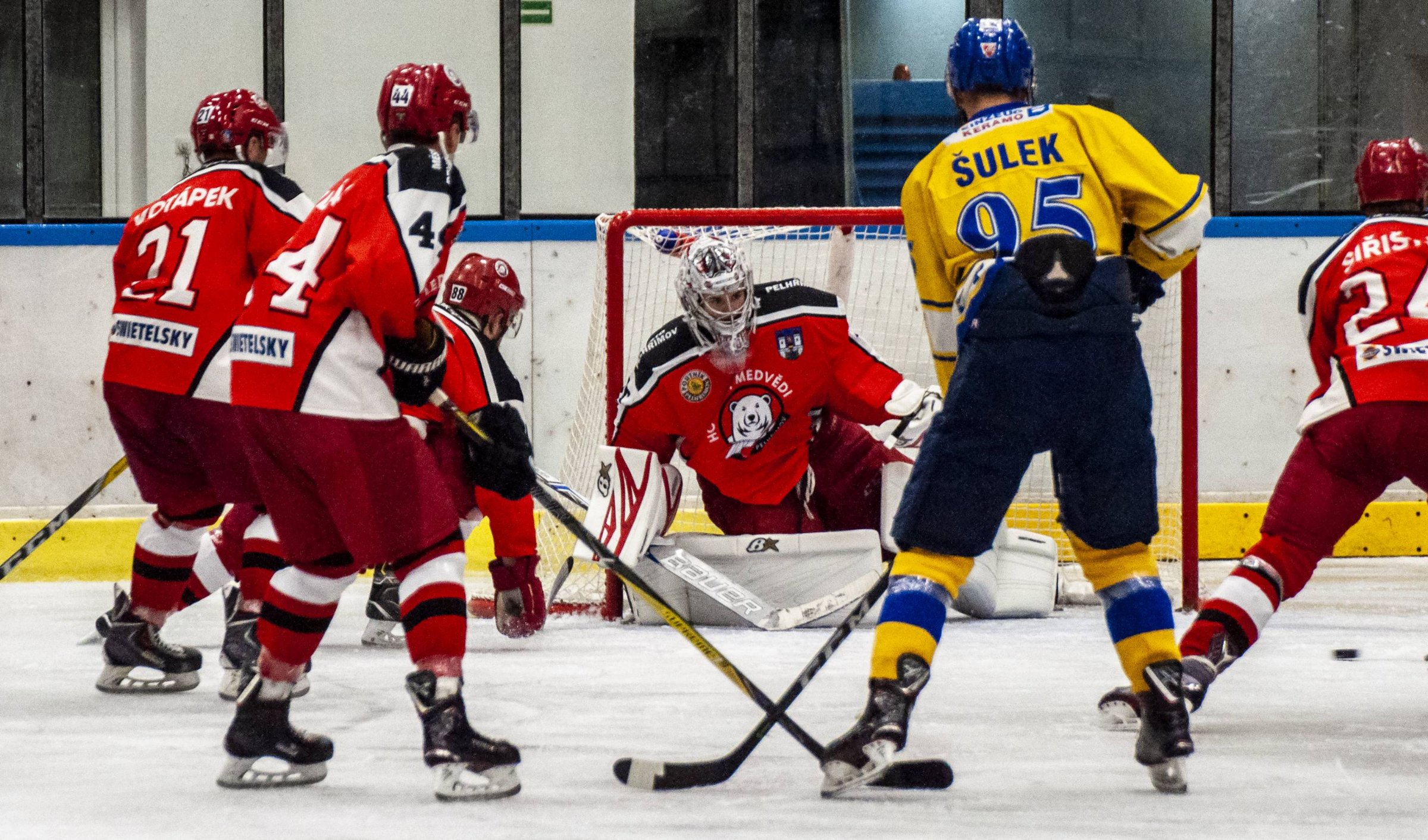 Ve 45. minutě využili Medvědi další přesilovou hru. Martin Hadrava přihrál na modrou Vladimíru Portovi a ten prostřelil vše, co mu stálo v cestě, včetně brankáře hostů. Domácí se ani nestihli oklepat z inkasovaného gólu a Hauser musel znovu lovit puk z vlastní sítě. Autor vítězného gólu Matouš Patočka se dokázal prosadit už podruhé v zápase a dostal Medvědy do čtyřgólového vedení. V 54. minutě se dostal do úniku Martin Hadrava, ale tentokrát na gólmana hostů nevyzrál. V 57. minutě se pokusili domácí alespoň korigovat skóre, Martin Holík ovšem dokázal pokrýt všechny dorážky. Nic zajímavého se už do konce utkání nestalo a Medvědi si tak odvezli domů všechny body za vysokou výhru 5:1. Díky této výhře se odlepili ze dna tabulky a na poslední postupovou pozici, kterou aktuálně drží právě Písek, ztrácí pouhé dva body.