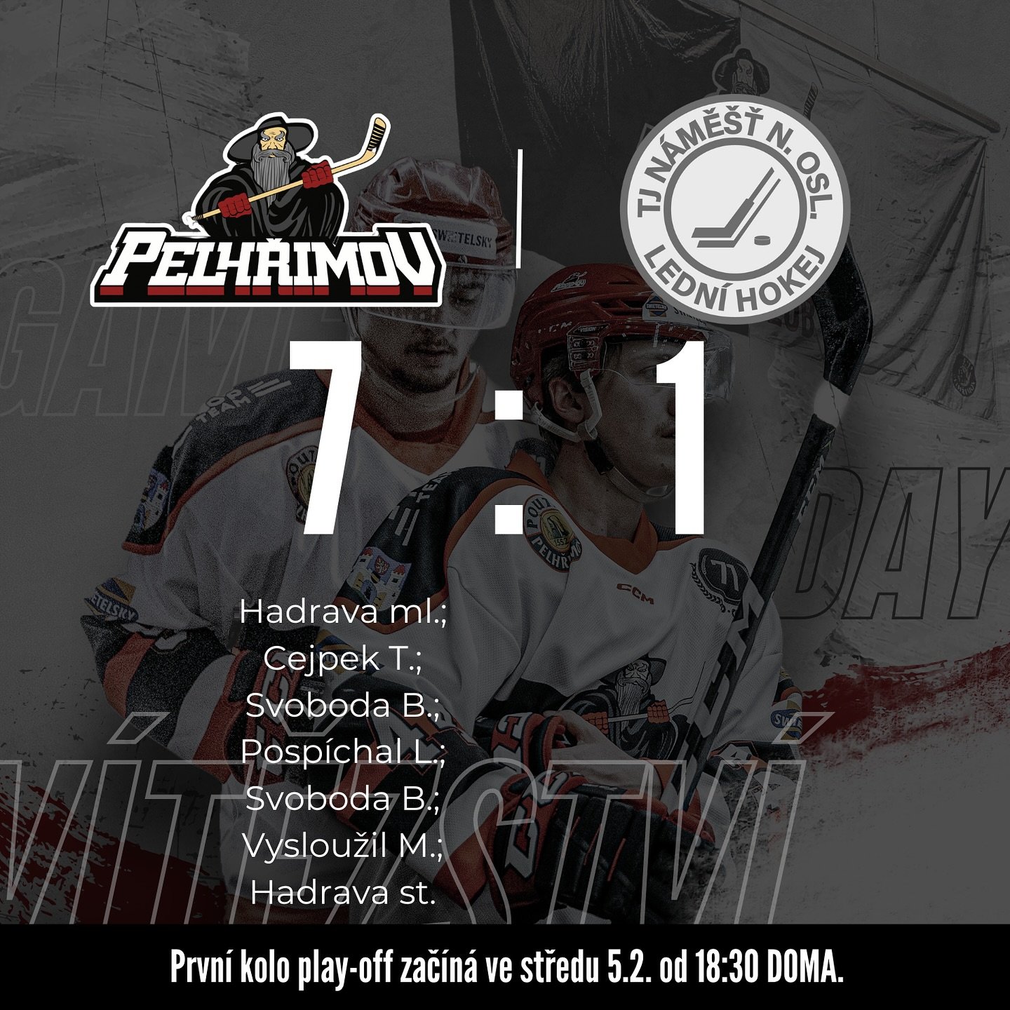 Nejlepšími hráči utkání byli zvoleni za hosty Václav Bednář a za domácí Jiří Kochrda. Základní část Krajské ligy Vysočiny tedy Poutníci zakončili na 4.místě a ve středu 5.února hostí na domácím ledě Skláře ze Světlé nad Sázavou v úvodním duelu čtvrtfinálové série.