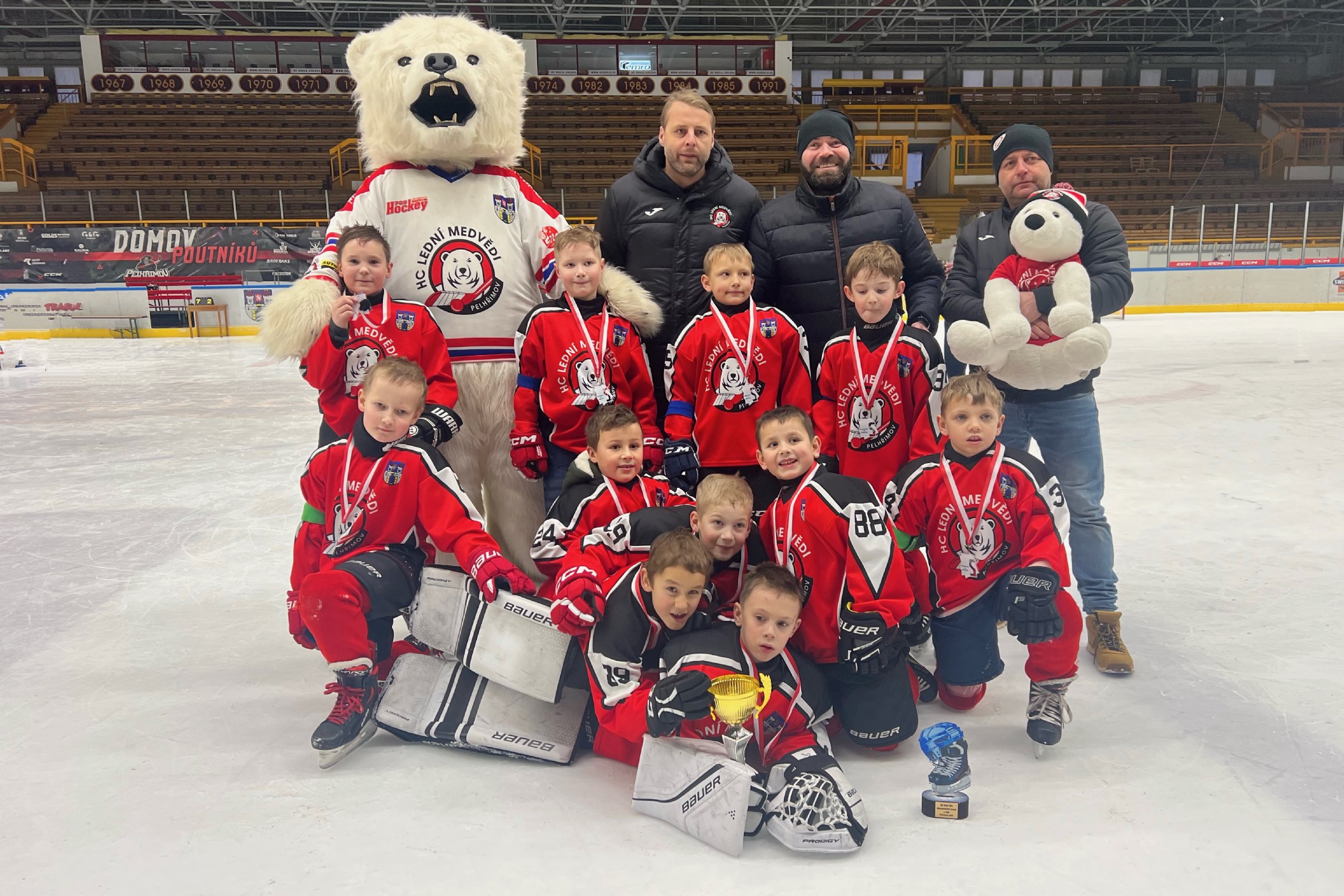 Pelhřimovští hokejisté ročníku 2017 přivítali na svém ledě v rámci Silvestrovského turnaje konaného v pondělí 30. prosince týmy Tábora, Soběslavi, Žďáru nad Sázavou, Vimperka, Humpolce, Chotěboře a Světlé nad Sázavou. Po úspěšné základní skupině se svěřenci trenérského dua Sláma - Krtek utkali ve finále s rivalem ze Světlé nad Sázavou. Finálový zápas nevyšel medvědům dle jejich představ, ale i zisk stříbrných medailí odstartoval skutečnou dětskou radost!