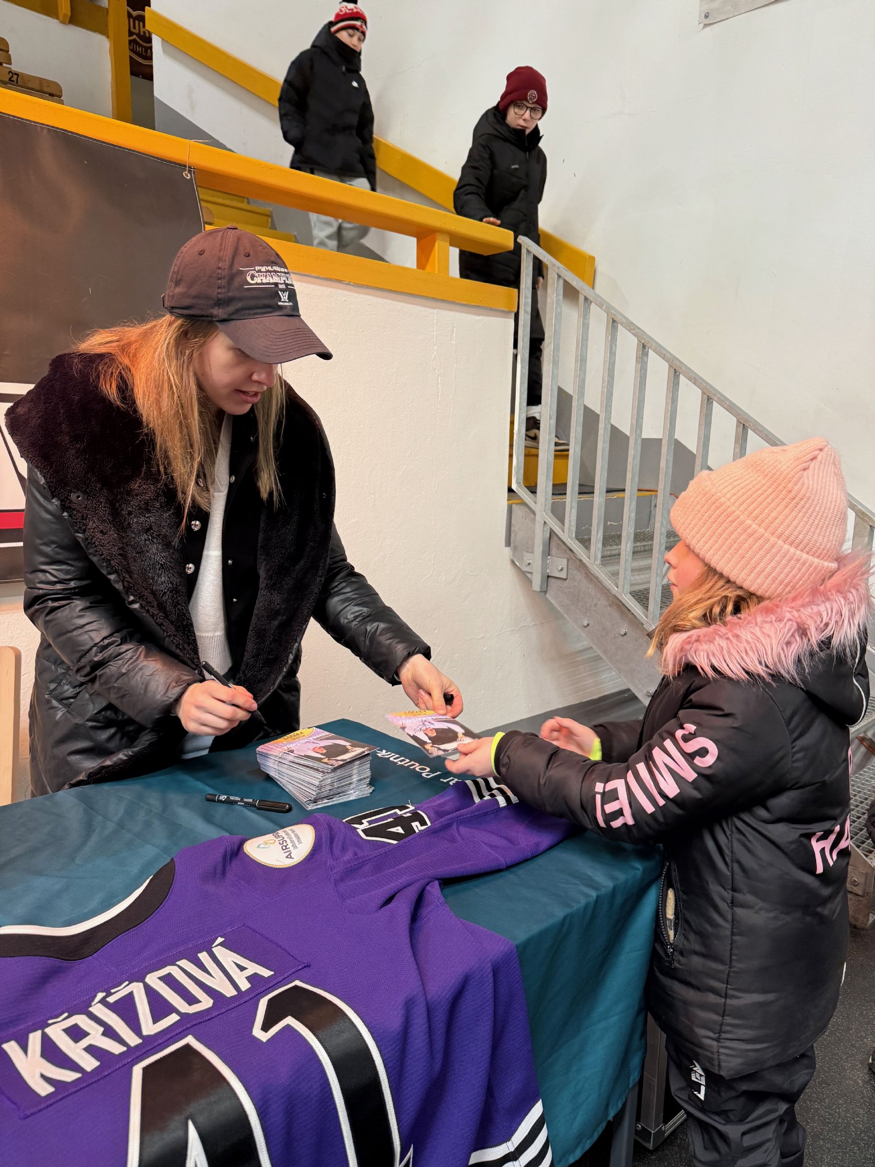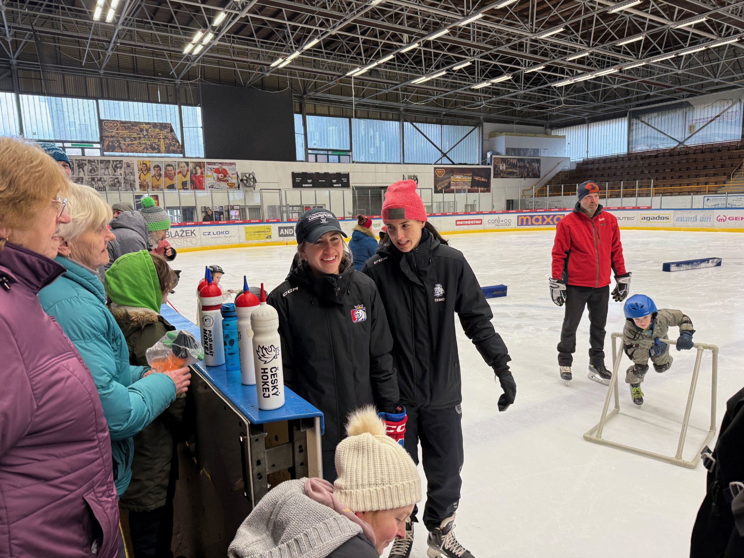 Denisa Křížová je odchovankyní pelhřimovského hokeje, kde až do svých 15 let sbírala první hokejové zkušenosti. Poté její cesta mířila do zahraničí, přičemž se následně stala první českou hokejistkou v nejprestižnější ženské hokejové lize světa - PWHL, kterou dokázala se svým týmem Minnesota Frost hned v první sezóně vyhrát. A nyní trofej Walter cup přivezla tam, kde s hokejem začínala. V rámci nabytého programu nejprve v sobotu v podvečer vhodila úvodní buly utkání Pelhřimov - Náměšť nad Oslavou, kdy ji přišli pogratulovat zástupci města i klubu. Mimo jiné Denisa obdržela certifikát českého rekordu, neboť se stala první českou šampionkou PWHL. Následně se v neděli ráno zúčastnila školičky bruslení, kde se s malými bruslaři ochotně fotila a darovala své podpisové kartičky. Děkujeme Denise za její vstřícnost a přejeme mnoho úspěchů v nadcházejícím světovém šampionátu v ženském hokeji, který startuje 9. dubna v Českých Budějovicích.