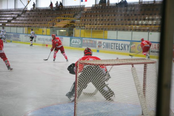 Třetí třetina se už dohrávala jen z povinnosti. Hosté pevně drželi svůj náskok a domácí se nemohli přes urputnou obranu prosadit. A když už přešli přes obranné hradby, vylámali si pelhřimovští střelci zuby na přesném Chvátalovi.