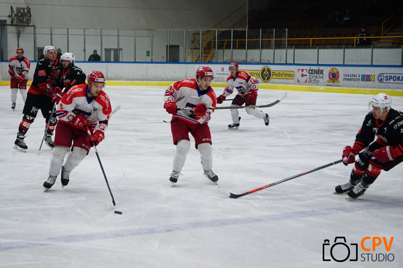 Hosté ze Žďáru nad Sázavou vstupovali do utkání v roli mírného favorita, čemuž dopomáhal i fakt, že v sestavě Medvědů se neobjevila hned šestice hráčů základní sestavy. Ovšem začátek zápasu patřil právě Pelhřimovu a již po 45 vteřinách otevřel skóre utkání Martin Hadrava. I další minuty ovládali domácí bojovníci podporováni skvělým výkonem fantoma v brance - Černého. Žďár se dostal do hry až v poslední dvacetiminutovce, ale vedení na svoji stranu vrátil Filip Kasalý a do prázdné branky se v poslední minutě trefil Vysloužil.