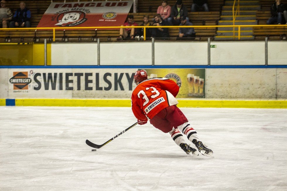 Když ve dvacáté osmé minutě vedli Pelhřimovští už 4:1, zdálo se, že Medvědi si slibně rozjeli cestu za třemi body. Jenže táborští Kohouti během pěti minut srovnali stav utkání, čímž se diváci dočkali v prostřední periodě sedmi branek, ale také napínavé bitvy, která měla vyvrcholit ve třetí dvacetiminutovce. Jenže ta už branku nenabídla, tudíž se střetnutí přehouplo do prodloužení. V tom šli hosté do oslabení, které dokázali Melenovského svěřenci využít. O bodu navíc pro Lední Medvědy rozhodl Martin Hadrava, který trefou v nastaveném čase zkompletoval hattrick.