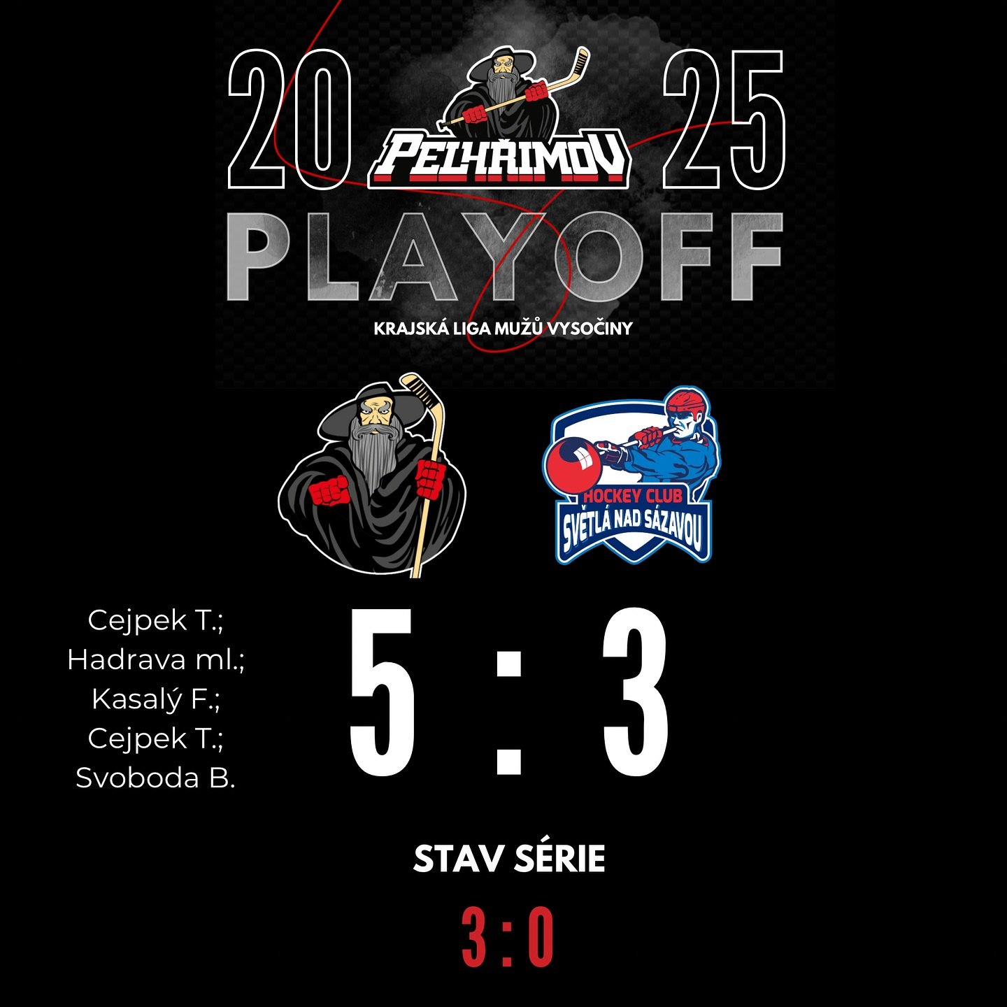 Poutníci tak v nejkratší možné době postoupili přes těžkého soupeře do semifinále Krajské ligy Vysočiny. Soupeř pelhřimovských hokejistů ještě není znám, ale s vysokou pravděpodobností se bude jednat o Žihadla z Moravských Budějovic, definitivní jistotu budou mít Poutníci až po dohrání série mezi rezervou Velkého Meziříčí a Humpolcem, které pokračuje zítra třetím duelem na Horácku.